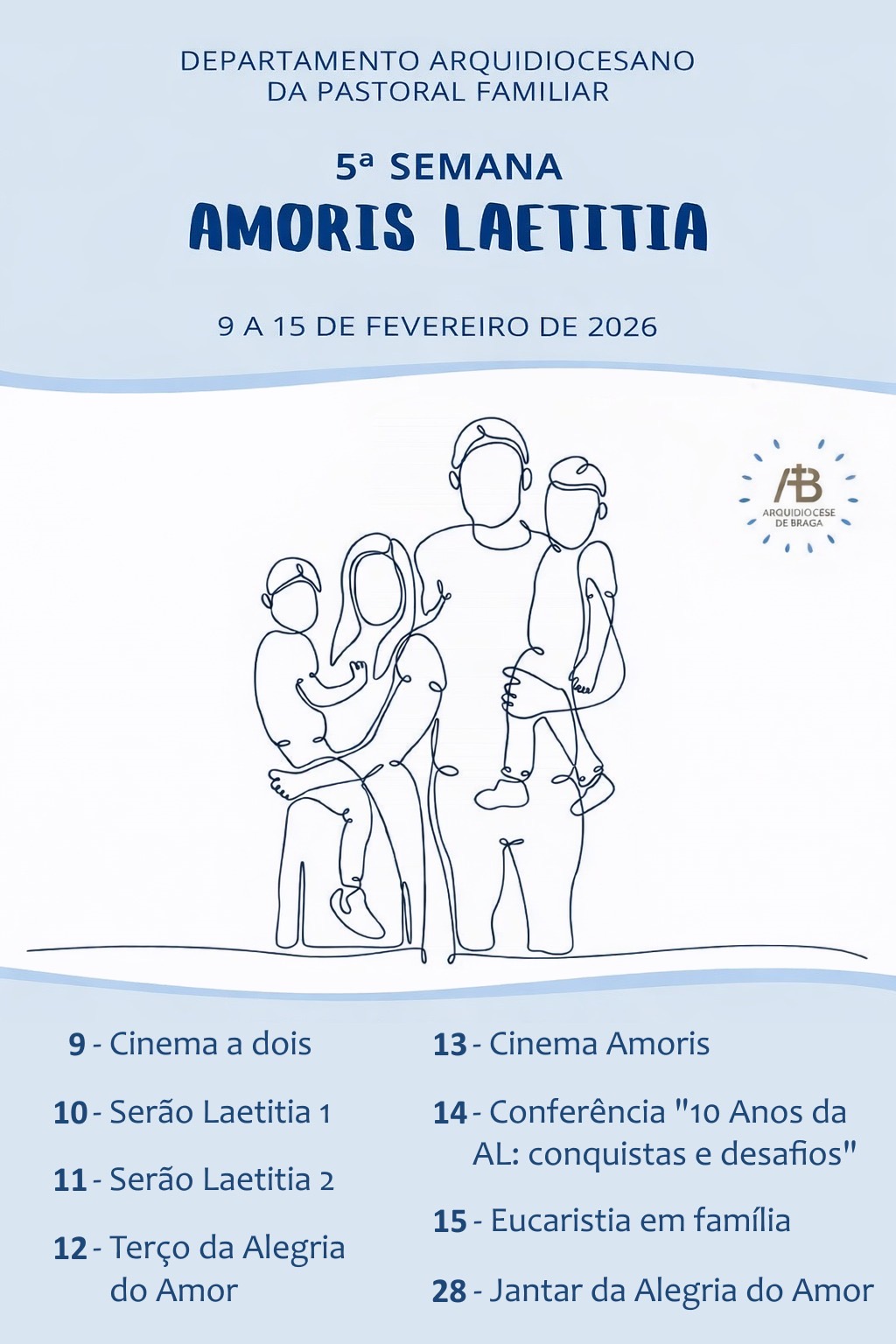 A 5ª Edição da Semana Amoris Laetitia (Semana AL) vai realizar-se de 9 a 15 de fevereiro de 2026, com o tema “Celebrando 10 Anos da Amoris Laetitia”. Em 2026, comemoram-se 10 anos da publicação desta Exortação Apostólica do Papa Francisco sobre o Amor na Família, datada de 19 de março de 2016 e publicada a 8 de abril do mesmo ano.